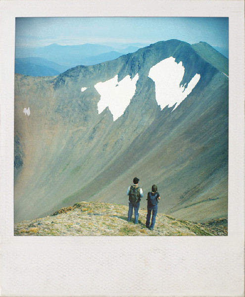 захватывающий вид с гребня перед озерами на ледовые цирки вулкана Вачкажец и озера в долине реки Быстрой.
